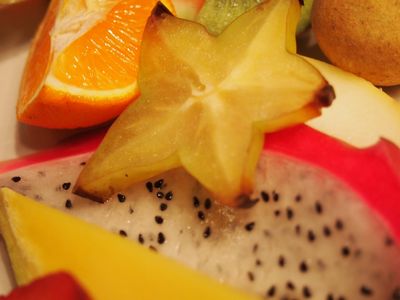 Un jour salés, un jour sucrés nous accompagnons nos déjeuners d'une multitude de fruits frais selon les arrivages et la saison.